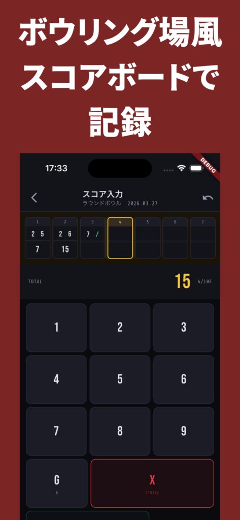 記録アプリが続かない最大の理由は「入力が面倒なこと」。Bowl Logはボウリング中でも片手でサッと入力できるシンプル設計にこだわりました。ゲームが終わったらすぐ記録する、その習慣が上達への近道です。