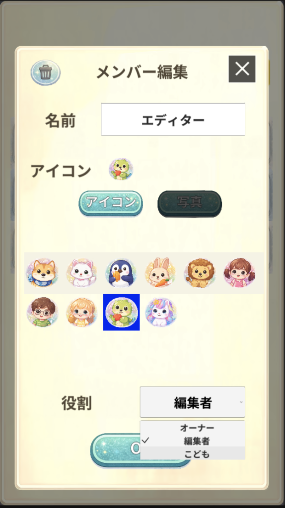 編集者を追加するには、オーナーの端末からメンバーの権限を変更します。