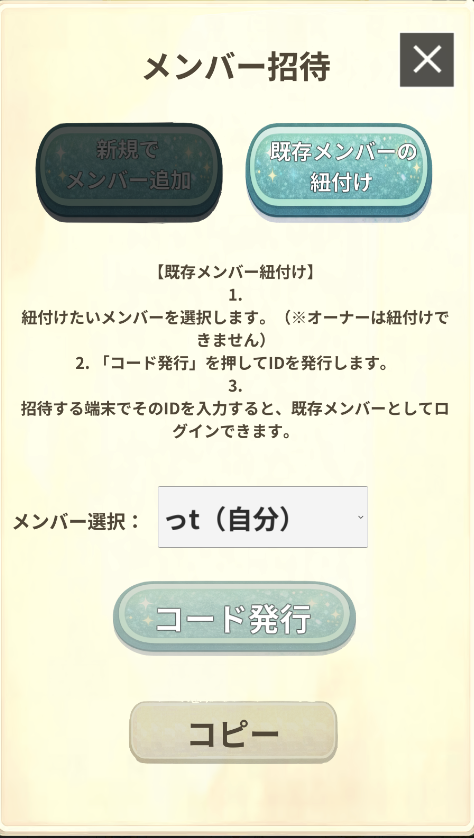 | 新しいメンバーを作る | 既存メンバーに端末を追加 |